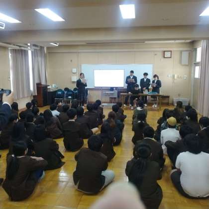 玉出中学生徒会のみなさんが中学校の生活について、紹介してくれました。