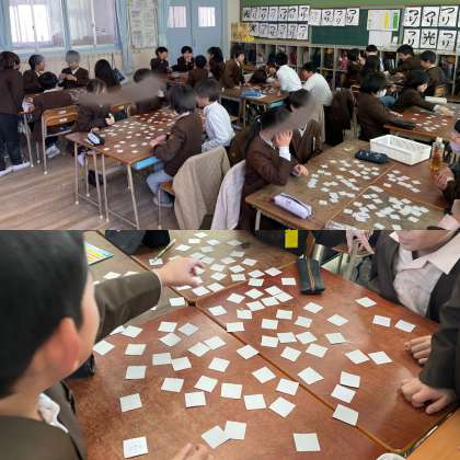 国語科では、「漢字の組み立てと意味」について学習しました。子どもたちは、漢字の多くはいくつかの部分が組み合わさってできていることを知りました。また、それを分けることができ、そのもとになる部分を部首と学習しました。その部首をより知るために神経衰弱をしました。カードは、子どもたちがパソコンや国語辞典を使って部首を調べて1枚1枚作りました。楽しんで学習している様子をご覧ください♪
