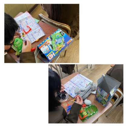 今日の理科では、電流と電磁石の実験が終わったので、モーターカーを組み立てていきました。