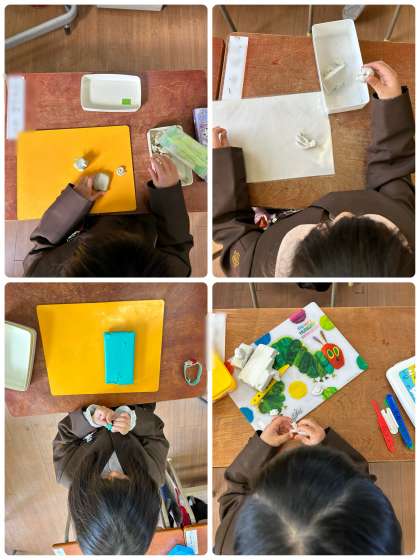 図画工作では、粘土で好きな動物や食べ物、好きなものを作りました!子どもたちの発想が面白かったです^^