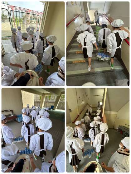 4月15日(月) 1年 給食を自分たちで運んだよ!