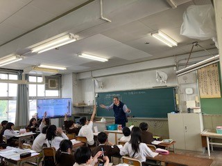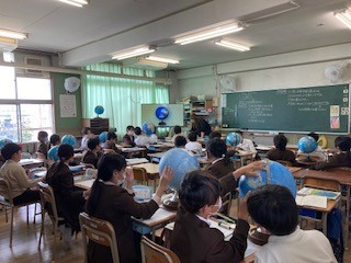 4年生の理科では元気よく手をあげて、5年生の社会では地球儀を見ながら授業を進めていました。