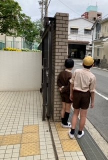 放送委員の2人が、委員会の仕事の前に正門で一緒にあいさつしてくれました。子どもたちもいつもより元気にあいさつを返していました。