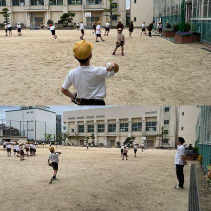今週とや来週は、4年生が大谷グローブを使えます。みんな上手に投げていました♪