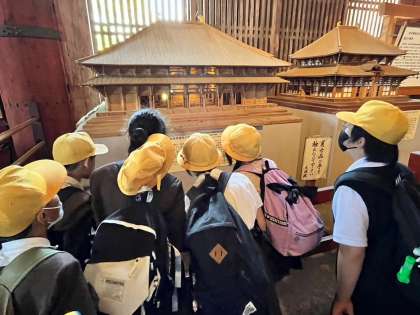 子どもたちは、予想以上に大きな大仏や細かく復元された模型を見て、「すごい!」と興味津々でした。