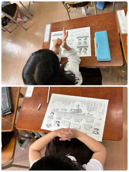 今日はおくの先生に給食の約束について教えてもらいました!まずは、しっかり石鹸で手を洗う。その後、みんなで準備をして楽しく食べることを学びました。また、給食の調理員さんが6人いて、700人分の給食を作っていることや一年生になって給食を食べた回数は昨日までで28回と知って驚いていましたよ^^