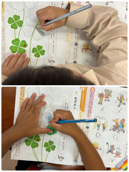 先週の道徳は、「友だちと一緒にする喜び」について考えました。友だちに話しかけるのは少し勇気がいるけれど、遊ぶときも学習をするときも1人より友だちとするほうがよいということに気づくことができました。