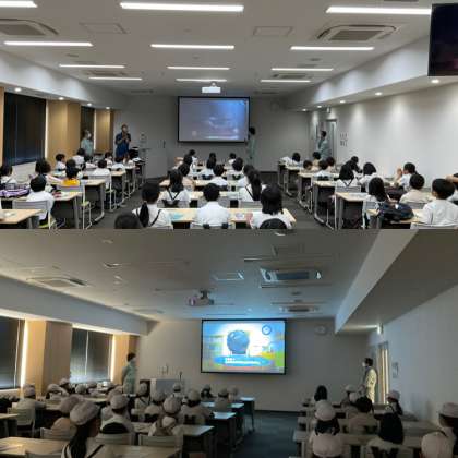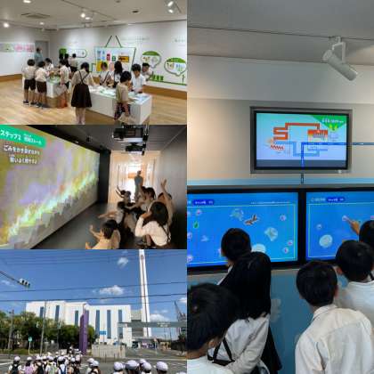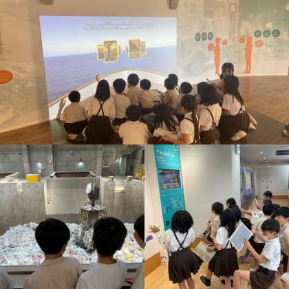 焼却工場では、DVDを見てお話を聞いた後、工場内を見学しました。子どもたちは、ゴミピットの中にあるごみを持ち上げるクレーンが見えて大興奮でした。また、ごみの焼却が見れるスクリーン体験であったり、動画でクイズを答えたり、3Rやごみの処理問題がわかる模型を触ったりと、たくさんの経験をすることができました。最後には、授業や見学の時に疑問に思ったことを職員の方に質問しました。丁寧に答えていただきありがとうございました。