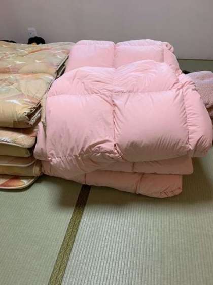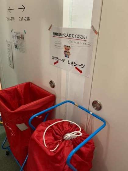 起床してシーツの片付け、布団をたたむなど朝の支度をしています。