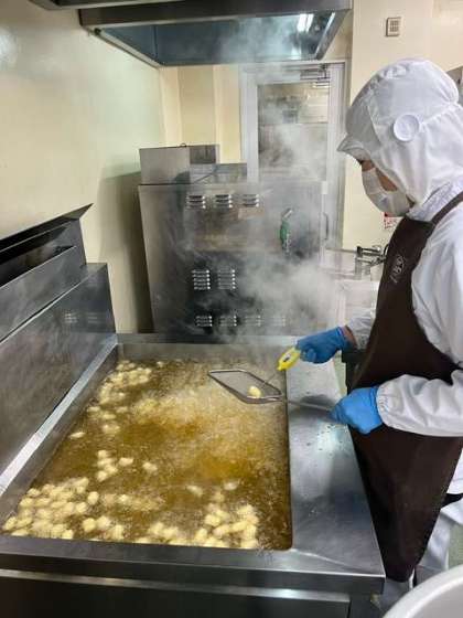 今日の献立のいかてんぷらは、衣のついた角切りのいかを170度のなたね油であげています。衣はサクサクで、とても食べやすい一品でした。