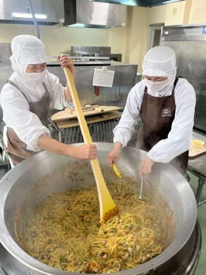 今日の献立のウインナーときのこの和風スパゲッティは、ウインナー、ベーコン、たまねぎ、にんじん、ピーマン、にんにく、しいたけ、しめじが入ったしょうゆベースの和風スパゲッティです。あっさりとした味ながら、ベーコンやきのこの旨みがしっかりと感じられる、味わい深い一品でした。