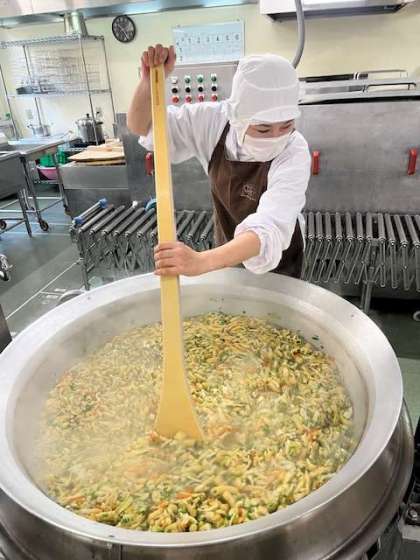 五目汁は、とうふ、うすあげ、キャベツ、たけのこ、みんじん、青ねぎが入った汁ものです。