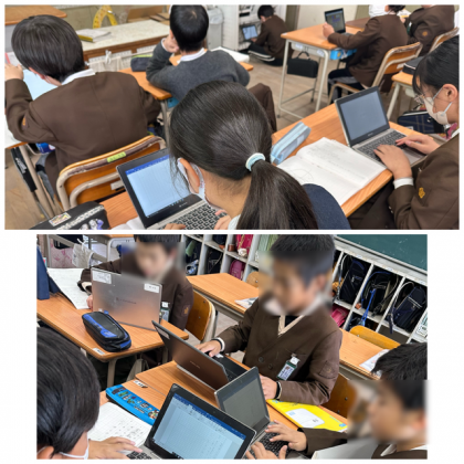 5年生では、どの教科も2学期の振り返りをしていますが、国語科では2学期の思い出を残そうと作文を書いてるところです。いつもは作文用紙に書いていきますが、今回はタブレットで作っています。タブレットだと、付け足しや修正が簡単に行えるところがいいですね♪