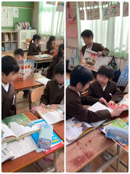 1年生の国語科では、「むかしばなしをたのしもう」や「おはなしをかこう」という学習があります。そのため、休み時間や授業中にたくさん昔話を読んでいます!お友だちに昔話の面白かったところやよいと思ったところを伝えあいました。たくさん昔話を読むと、「むかしばなしマスター」の称号が与えられます^^