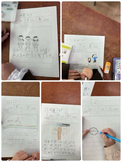生活科では、「ふゆ見つけ」をしました!寒いと、鯉の池が凍ること、息が白く見えること、葉が枯れて春の用意をしていることなどに気付くことができました!文章も上手になっており、もう2年生になる準備ができています^^