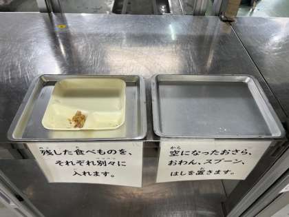 今日の『ごちそうさまが終わった後も、頑張って食べた児童』が返却してくれたお皿やおわんの様子です。とても素晴らしいと思います!
