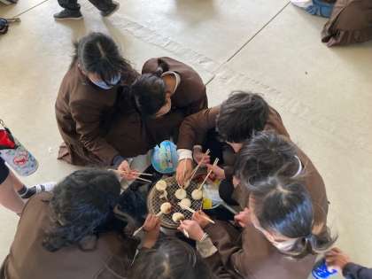 地域の皆さまにご協力いただき、七輪でおもちを焼いています。