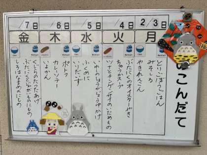 今日から2月の給食です。2月に合わせた『節分バージョン・トトロ』は、いつも心のこもった折り紙で季節を表現してくれる、5年生児童の作品です!いつも本当にありがとう!