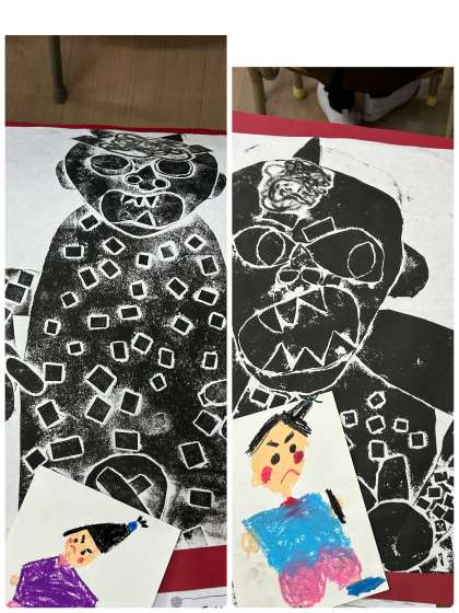 図画工作科では「いっすんぼうしのはんが」に挑戦しました!初めてで難しかったようですが、「たのしかった」や「また、したい!」と言っていました!各教室に掲示していますので、学習発表会で来られた際に見てください♪