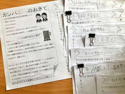 いろいろな係を、会社に見立てて運営するようです。それぞれの会社が発展するよう応援しています。