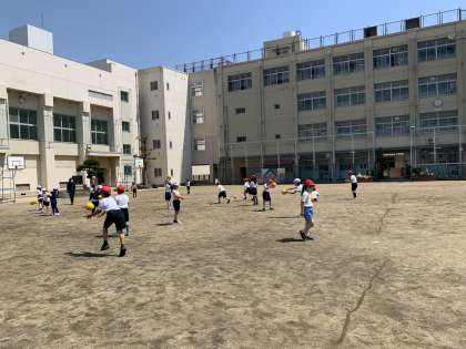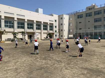 ボールを空に向かって投げてキャッチしたり、地面にボールをバウンドさせたものをキャッチしたりしました。