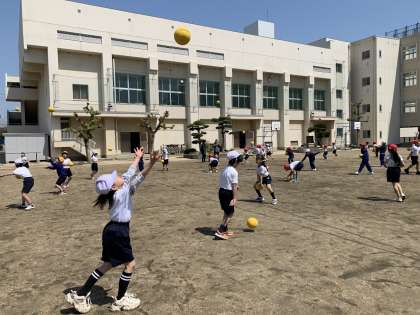 その後、みんなでボールあてゲームをしました。ボールを投げたり、逃げたりしながらボール遊びを楽しんでいました。