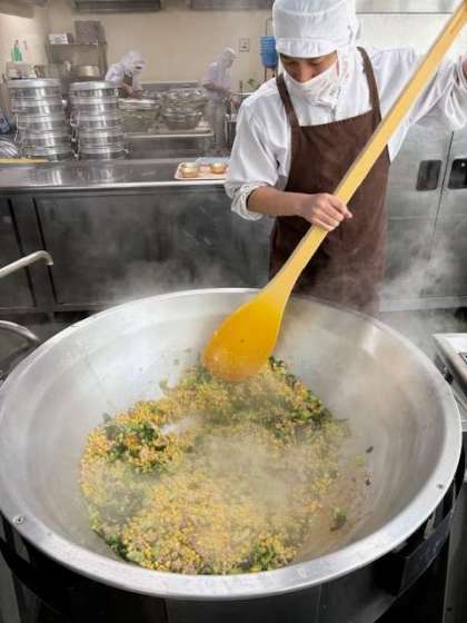 ツナとチンゲンサイのいためものは、ツナ、下茹でしたチンゲンサイ、コーンを炒め、塩、こしょう、こいくちしょうゆで味付けしています。ツナの旨みがよく出ていました。