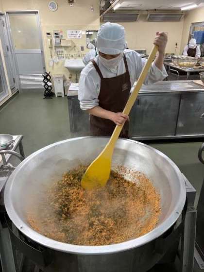 紅ざけそぼろは、紅ざけフレーク、いりごま、あおのりを炒めています。ごはんにとてもよく合いました。