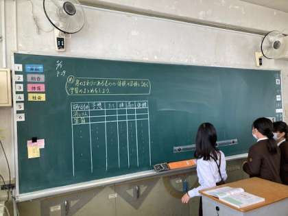 ロッカー、教科書、黒板など・・