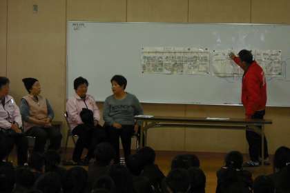 3時間目は多目的室にて、3年生へ南津守の歴史についてお話していただきました。