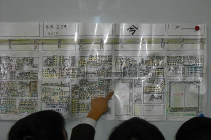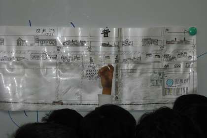 子どもたちは今と昔の地図に興味津々で見入っていました。