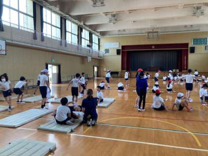 5時間目、講堂では6年生、運動場では5年生が体力テストを実施していました。