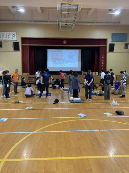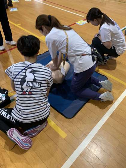 胸骨圧迫の仕方やAEDの使い方のレクチャーや
