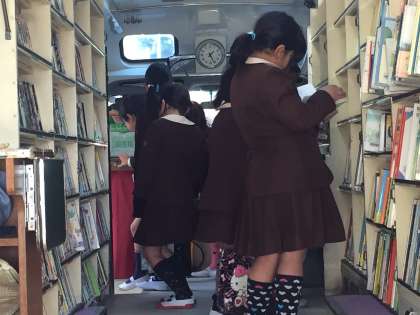今回は、6年生と4年1組が休業の中の「自動車文庫」だったため、少し利用者が少ない感じがありましたが、他の学年からはたくさんの利用者がありました。