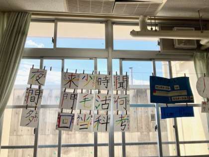 教室の掲示を見ながら、書き順も正しく練習しています。
