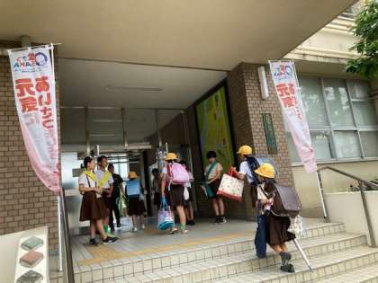 元気よくあいさつをすると、つもりんカラーのシールがもらえます。