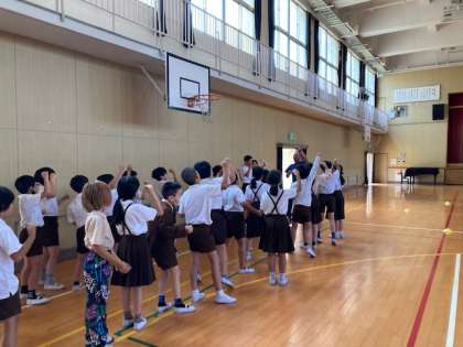 来週の一泊移住に向けて、予行練習をしています。大きな声で、元気よく盛りあがっています!