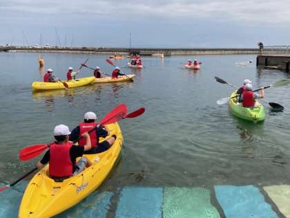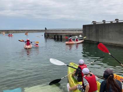 まず1組が、カヌーで海へ漕ぎ出しました。