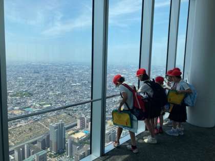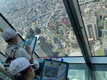 ガラス張りになっているところに、恐る恐る足を踏み出しています。