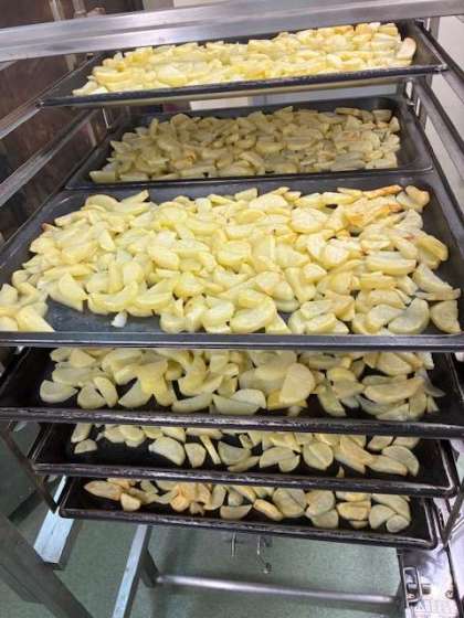 焼きじゃがは、塩と綿実油で下味をつけたじゃがいもを焼物機で焼いています。ホクホクとした仕上がりで、大人気の一品でした。