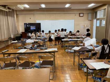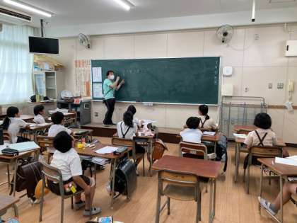 先生たちも、教室ならあるはずの物がない中、工夫しながら授業をすすめています。