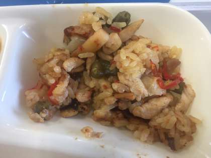 今日の給食には、他国の伝統料理を学ぶいっかんとして「パエリア」が出ました。