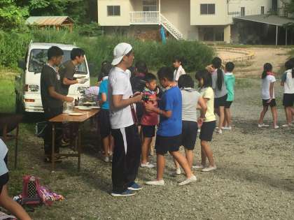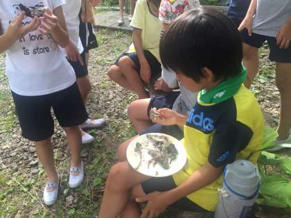 魚つかみ終了です。結果は…見事、魚をみんなで全て捕ってしまい、