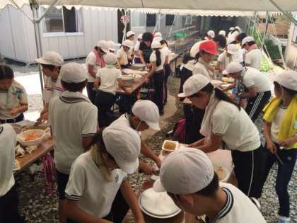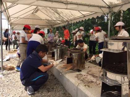 飯盒、かまど、カレーの3つの役割に分かれて調理開始です!