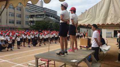 1時間目に、運動会の全体練習の2回目を実施しました。今日の練習は、応援団、整理体操・閉会式等の練習でした。