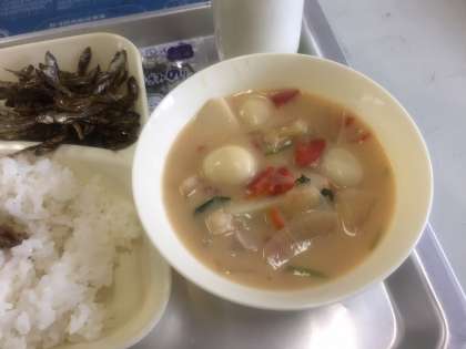 今日の給食は、正月の行事献立です。きんぴらちらし、ぞう煮、ごまめが出ました。子ども達には、新年を祝う気持ちやいろいろな願いが込められた「おせち料理」に親しんでもらいたいと思います。