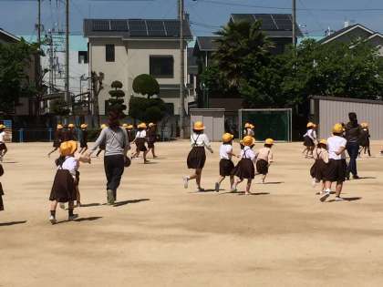 避難する際は、みんなハンカチで口と鼻をふさぎ、真剣な表情で取組んでいました。