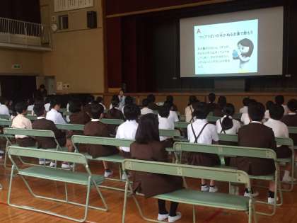6年生の保健体育の学習では、学校薬剤師の先生にお越しいただき、薬の正しい使い方や悪い誘いからの断り方など、大切なことをたくさん教えていただきました。