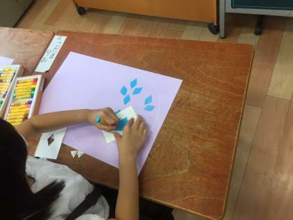 〇画用紙とパスで上手にあじさいの花を咲かせていきます