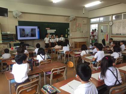 〇1年生の学校たんけんでいろいろな部屋の説明をした体験を班ごとの発表しました。